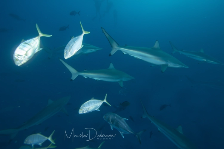 4.den: lokality v oblasti Huvadhoo atolu - proudové ponory v průlivech s hejny žraloků šedých a při troše štěstí i kladivounů...